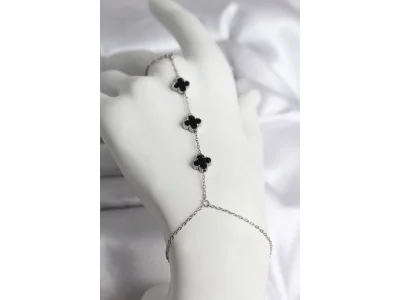 316L Çelik Gümüş Renk Siyah Yonca Model Kadın Şahmeran