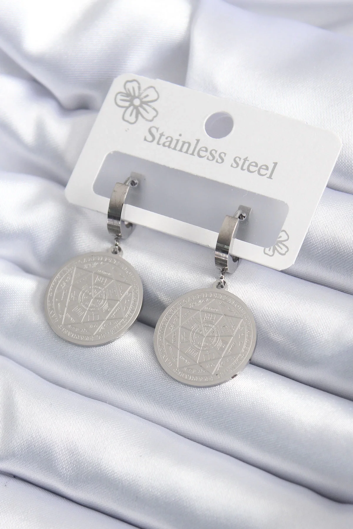 316l Çelik Gümüş Renk Pentagram İşleme Model Kadın Küpe