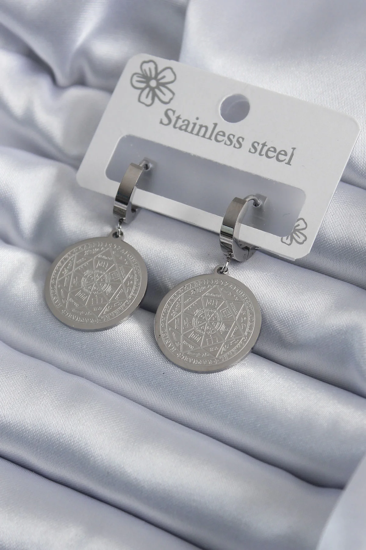 316l Çelik Gümüş Renk Pentagram Yıldızı İşleme Kadın Küpe