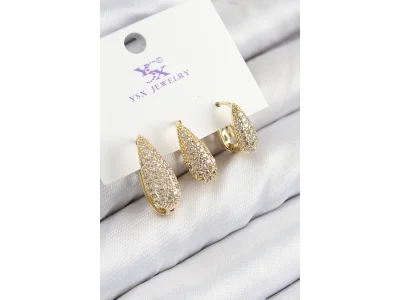 Pirinç Zirkon Taşlı 3'lü Damla Model Gold Renk Kadın Küpe