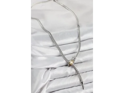 Pirinç Asansörlü Yılan Model Gümüş Renk Kadın Kolye