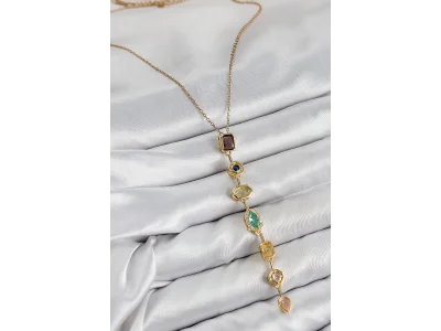 Pirinç Renkli Zirkon Taşlı Model Gold Renk 7 Element Kadın Y Kolye