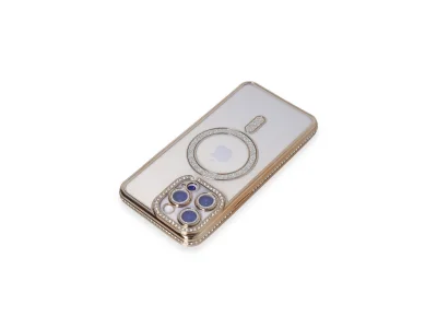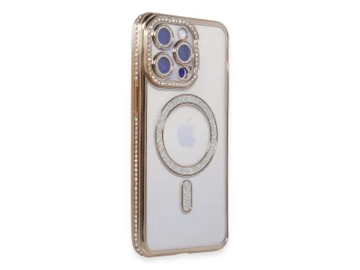İphone 15 Pro Max Kılıf Joke Simli Magneticsafe Kılıf - Gold