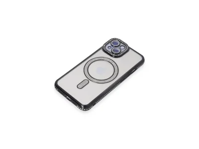 İphone 15 Kılıf Joke Simli Magneticsafe Kılıf - Siyah