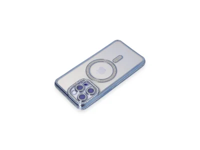 İphone 15 Pro Kılıf Joke Simli Magneticsafe Kılıf - Mavi