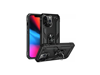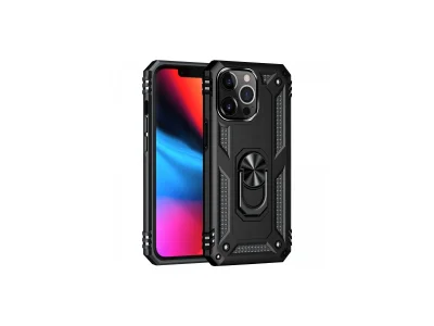 İphone 14 Pro Max Kılıf Sofya Yüzüklü Silikon Kapak - Siyah