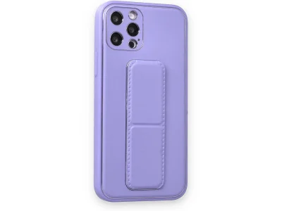 İphone 12 Pro Kılıf Coco Deri Standlı Kapak - Koyu Lila