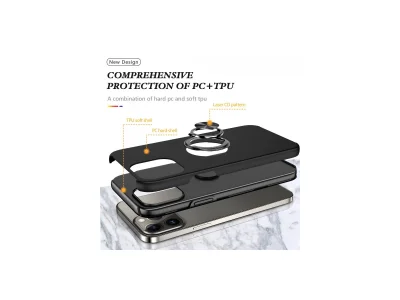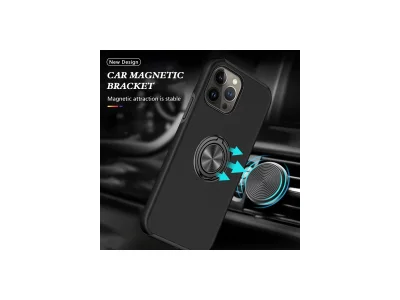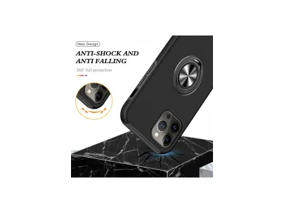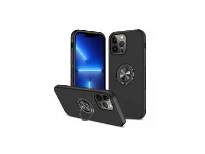İphone 13 Pro Kılıf Elit Yüzüklü Kapak - Siyah