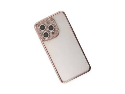 İphone 14 Pro Kılıf Joke Taşlı Silikon - Pembe