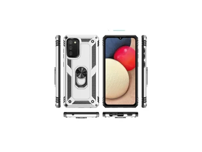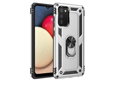 Samsung Galaxy A02s Kılıf Sofya Yüzüklü Silikon Kapak - Gümüş