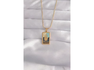 316L Çelik Gold Renk Mavi Mineli Tarot Kolye