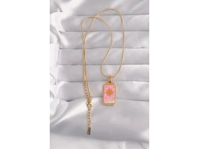 316L Çelik Gold Renk Pembe Mineli Güneş Model Tarot Kolye