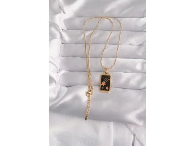 316L Çelik Gold Renk Siyah Mineli Yıldız Figür Tarot Kolye