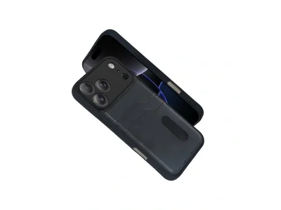 Apple İphone 17 Pro Max Sara Kartvizitli Deri Kılıf - Lacivert