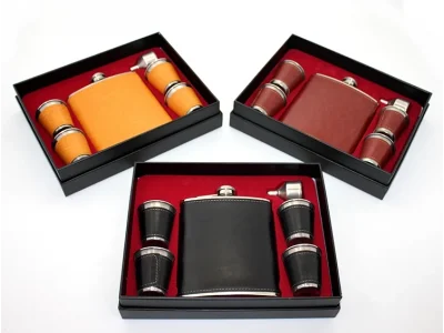 Deri Kılıflı Shot Bardaklı Matara Alk3913