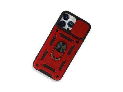 İphone 15 Pro Kılıf Pars Lens Yüzüklü Silikon - Kırmızı