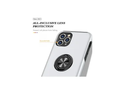 İphone 11 Pro Max Kılıf Elit Yüzüklü Kapak - Gümüş