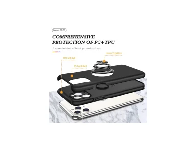 İphone 11 Pro Max Kılıf Elit Yüzüklü Kapak - Siyah