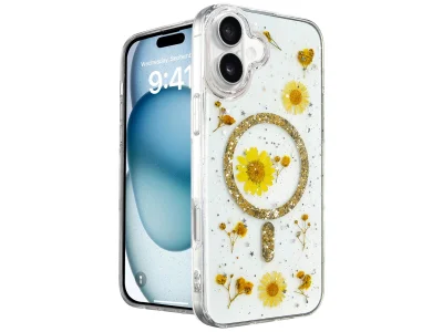 İphone 16 Kılıf Daisy Simli Magsafe Kapak - Gold