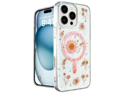 İphone 16 Pro Max Kılıf Daisy Simli Magsafe Kapak - Pembe