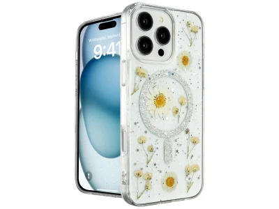 İphone 16 Pro Max Kılıf Daisy Simli Magsafe Kapak - Gümüş