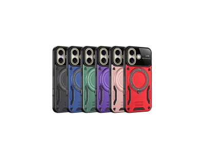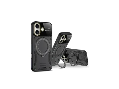 İphone 16 Kılıf Joy Lens Standlı Kapak - Siyah