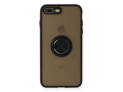 İphone 7 Plus Kılıf Montreal Yüzüklü Silikon Kapak - Siyah