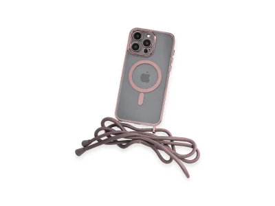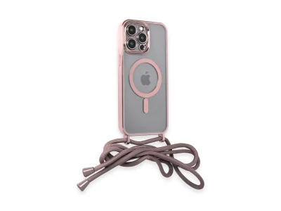 İphone 13 Pro Max Kılıf Divo Lazer Askılı Magsafe Kapak - Pembe