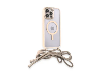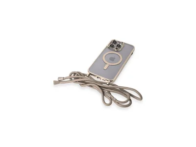 İphone 13 Pro Max Kılıf Divo Lazer Askılı Magsafe Kapak - Gold