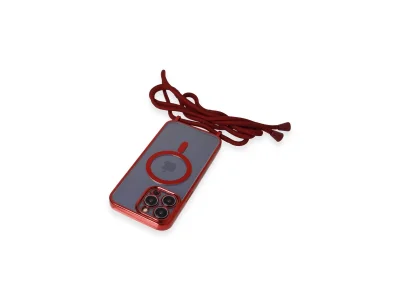 İphone 12 Pro Max Kılıf Divo Lazer Askılı Magsafe Kapak - Kırmızı
