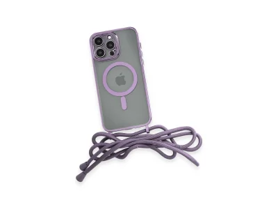İphone 12 Pro Max Kılıf Divo Lazer Askılı Magsafe Kapak - Lila