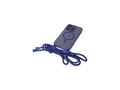 İphone 12 Pro Max Kılıf Divo Lazer Askılı Magsafe Kapak - Mavi