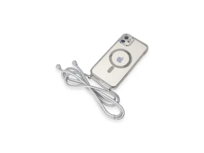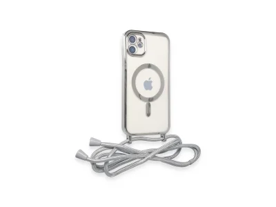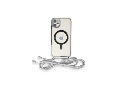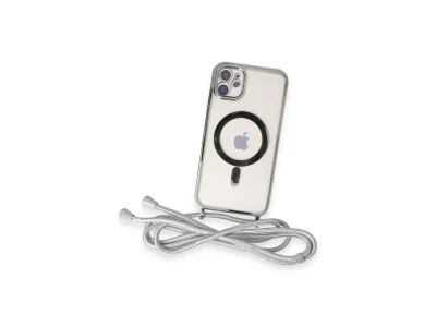 İphone 11 Kılıf Divo Lazer Askılı Magsafe Kapak - Gümüş