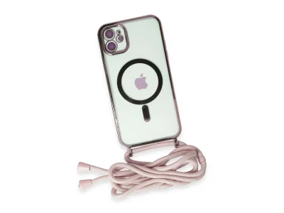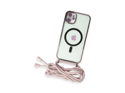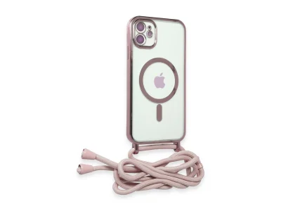 İphone 11 Kılıf Divo Lazer Askılı Magsafe Kapak - Pembe