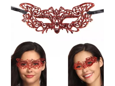 Kırmızı Dantel Masquerade Maskesi Çift Taraflı 10 No