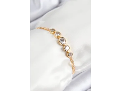 Pirinç Zirkon Taşlı Sıralı Model Gold Renk Asansörlü Kadın Bileklik