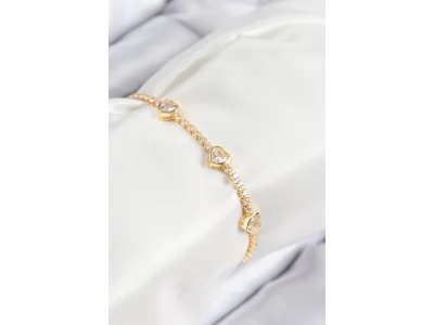 Pirinç Zirkon Taşlı Sıralı Kalp Model Gold Renk Kadın Bileklik