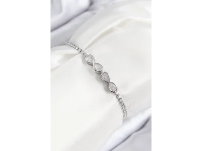 Pirinç Zirkon Taşlı Sonsuzluk Model Gümüş Renk Asansörlü Kadın Bileklik