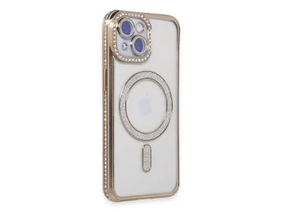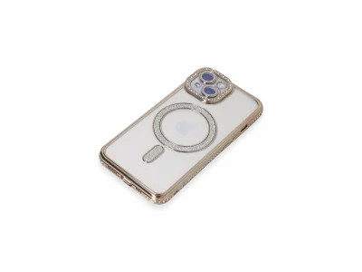 İphone 15 Kılıf Joke Simli Magneticsafe Kılıf - Gold