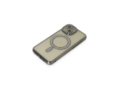 İphone 15 Kılıf Joke Simli Magneticsafe Kılıf - Gri