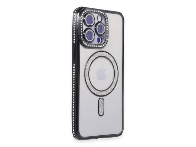 İphone 15 Kılıf Joke Simli Magneticsafe Kılıf - Siyah