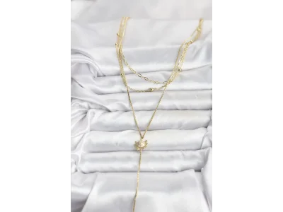 Pirinç Gold Renk Zirkon Taşlı Çiçek Model Detaylı 3'lü Kombin Y Kadın Kolye