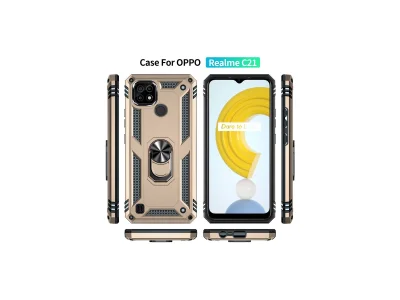 Realme C21 Kılıf Sofya Yüzüklü Silikon Kapak - Gold