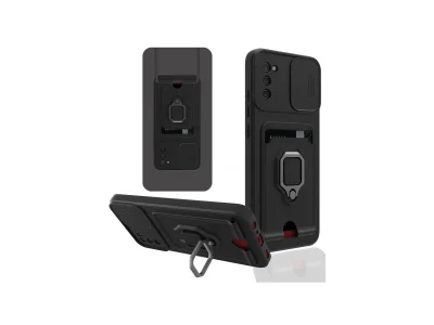 Samsung Galaxy A02s Kılıf Zuma Kartvizitli Yüzüklü Silikon - Siyah