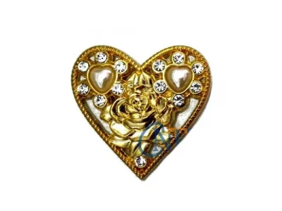 Taşlı Kalp Broş, Kutu, Sandık Süsü - Sarı, 1 Adet